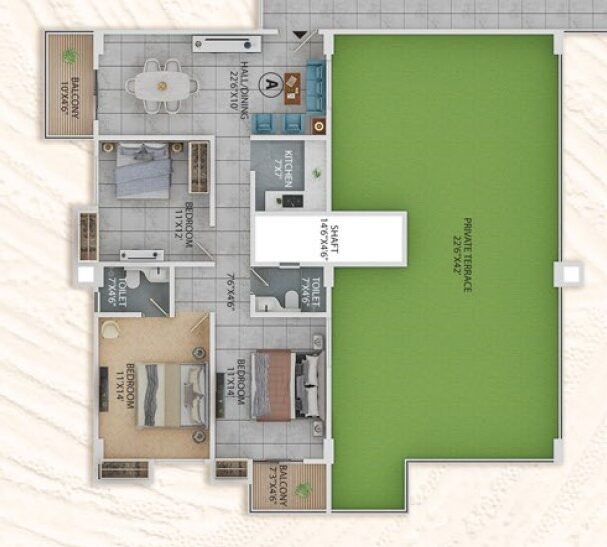 3BHK - 1294 sqft + 1268 sqft Private Terrace