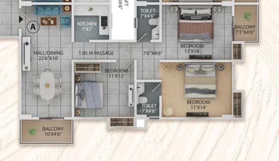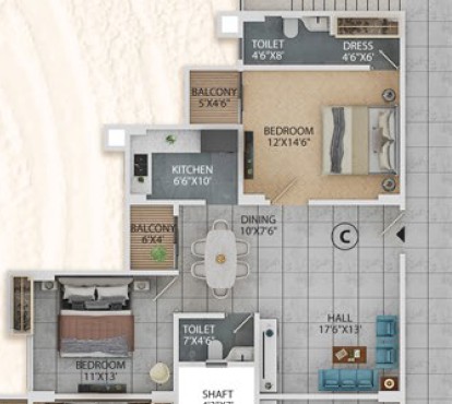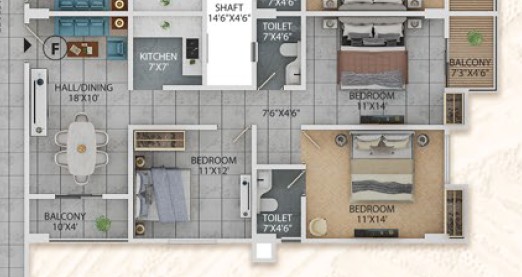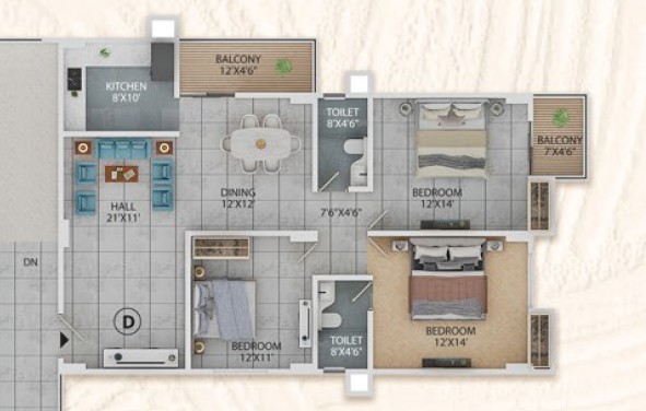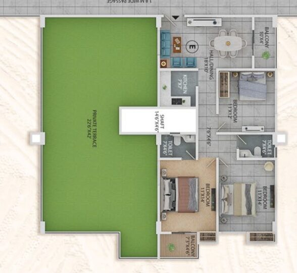 3BHK - 1378 sqft + 1268 sqft Private Terrace