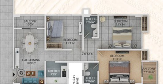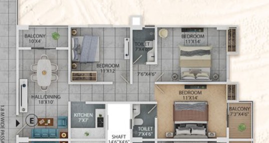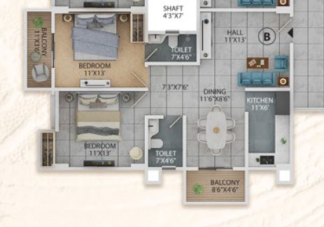 3BHK - 1378sqft