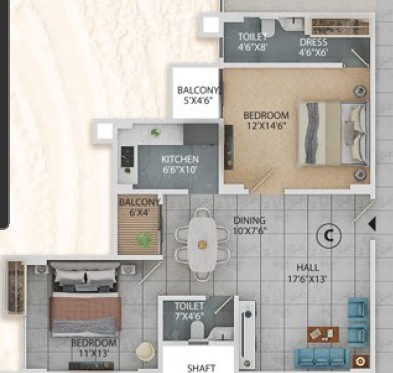 2BHK - 1134 sqft
